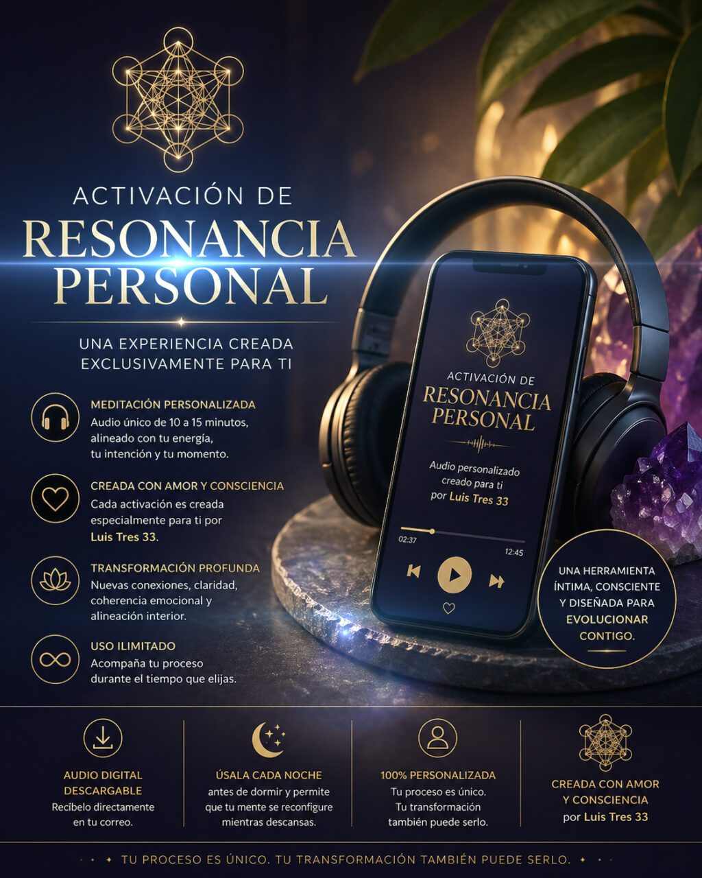 Es una meditación personalizada creada especialmente para ti por Luis Tres 33, basada en tu momento, tu intención y lo que deseas transformar.