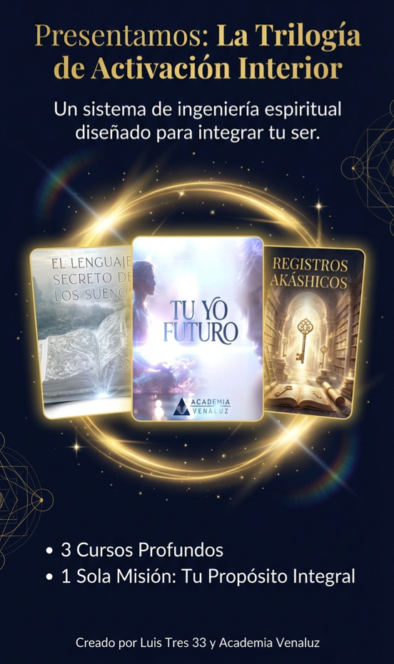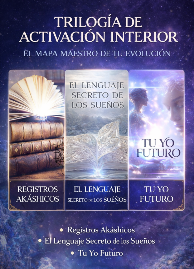 Trilogía de Activación Interior: El Mapa Maestro de tu Evolución es una experiencia formativa integral que reúne tres talleres profundos —Registros Akáshicos, El Lenguaje Secreto de los Sueños y Tu Yo Futuro— para sanar tu origen, comprender tu presente y diseñar tu destino consciente.