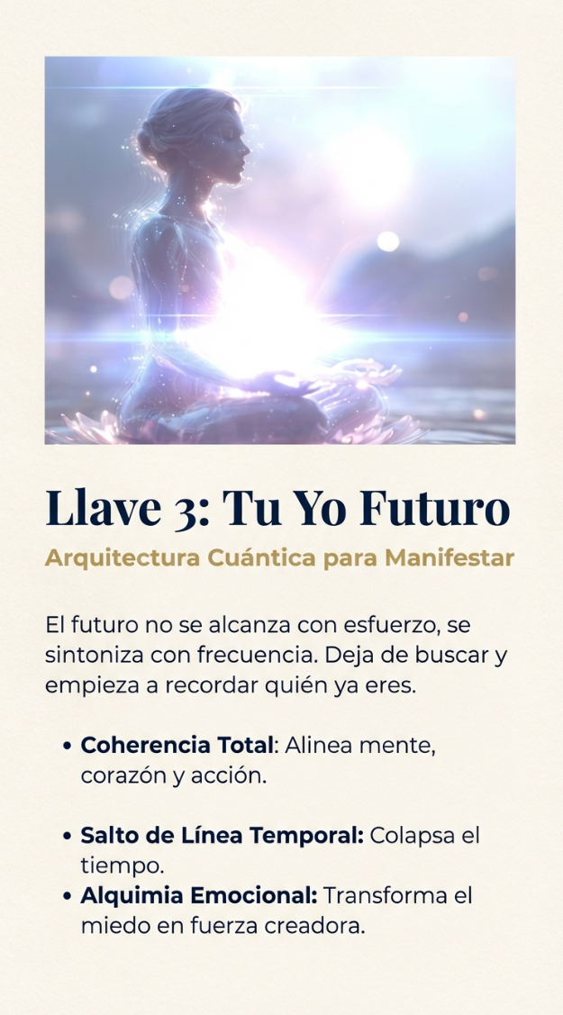 Tu Yo Futuro (Futuro): Conexión con la frecuencia vibratoria de tu versión más elevada para manifestar una nueva realidad desde la intención consciente.